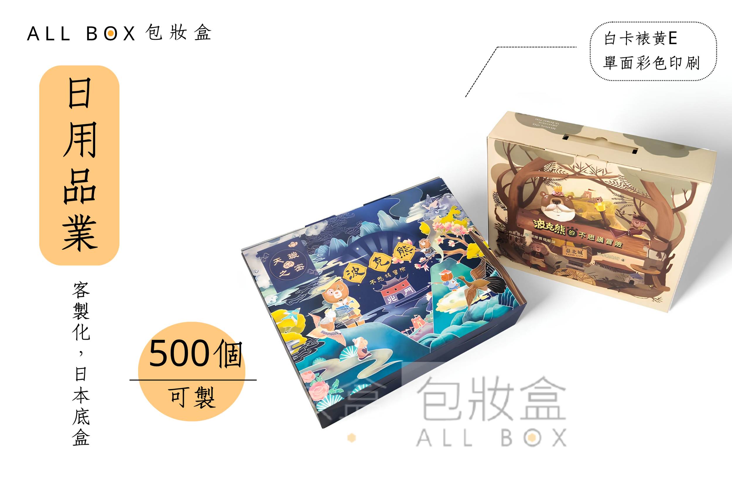 .顏色:白卡裱黃E浪+單面彩色印刷 .特點:數量500即可客製化/多種尺寸量身訂做/隨拿隨用/白卡彩色印刷 .用途:觀光文創/禮品/送禮/桌遊包裝/便利攜帶/一般包裝材/紙盒/普通盒/彩盒