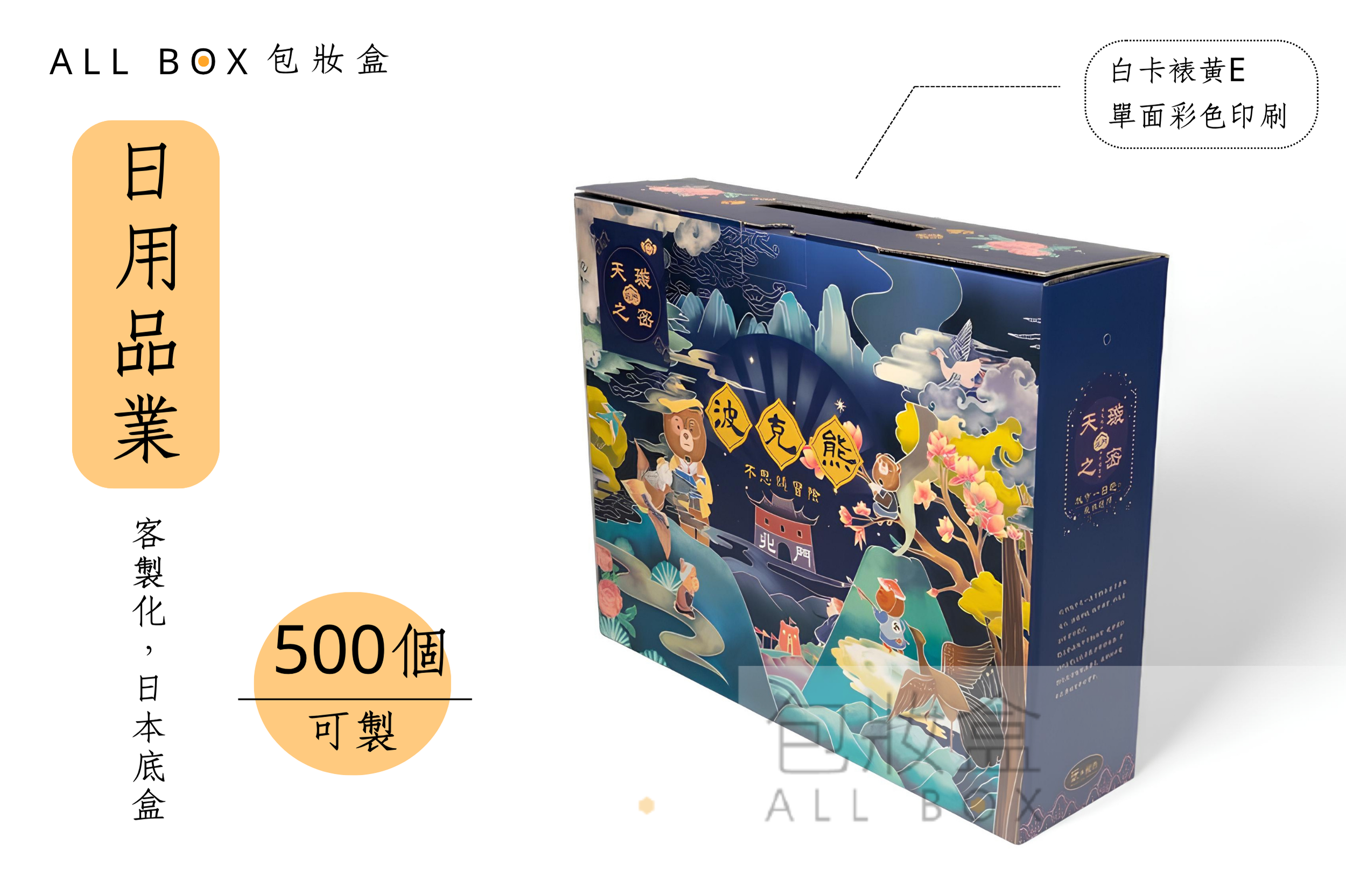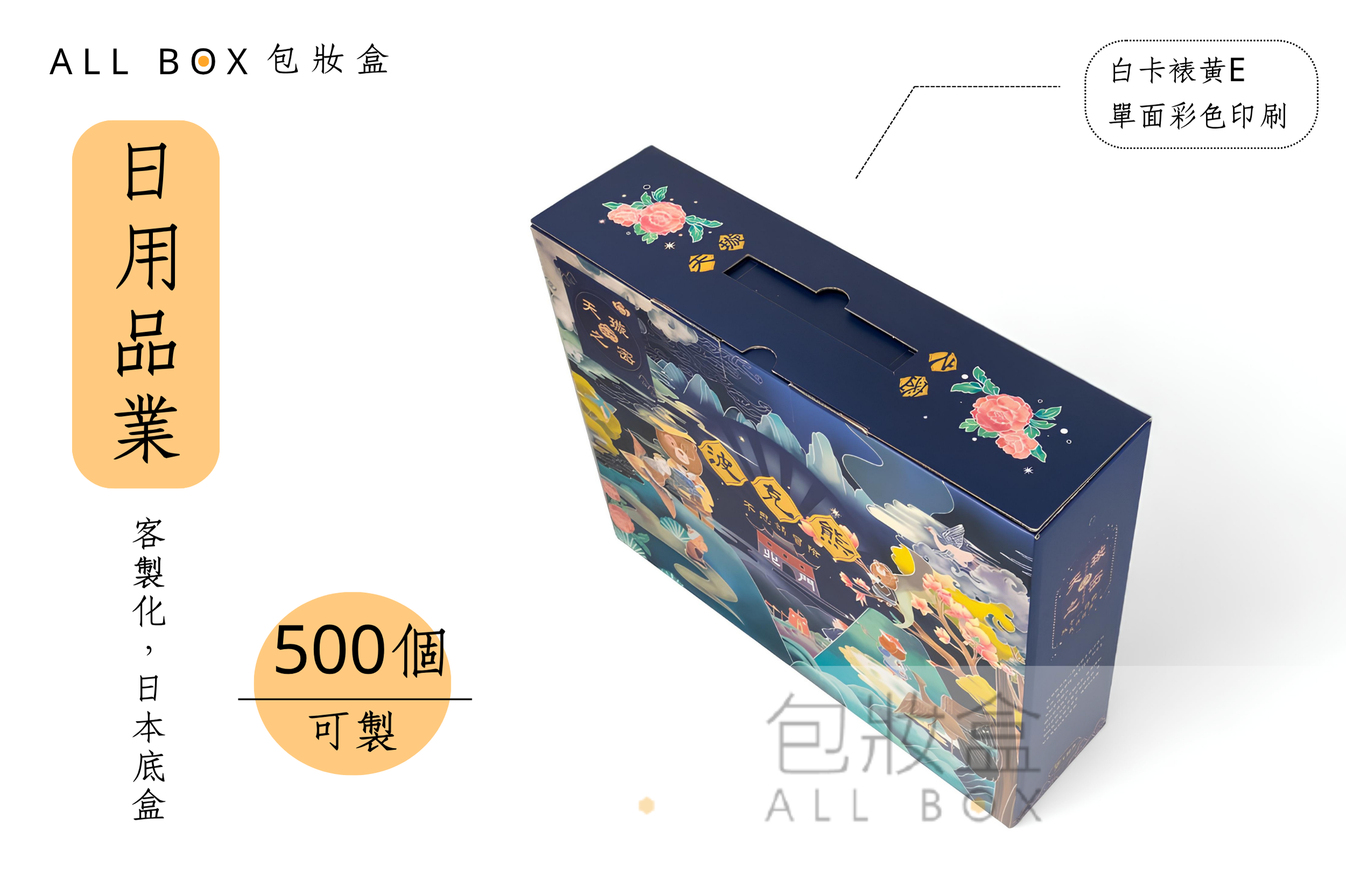 .顏色:白卡裱黃E浪+單面彩色印刷 .特點:數量500即可客製化/多種尺寸量身訂做/隨拿隨用/白卡彩色印刷 .用途:觀光文創/禮品/送禮/桌遊包裝/便利攜帶/一般包裝材/紙盒/普通盒/彩盒