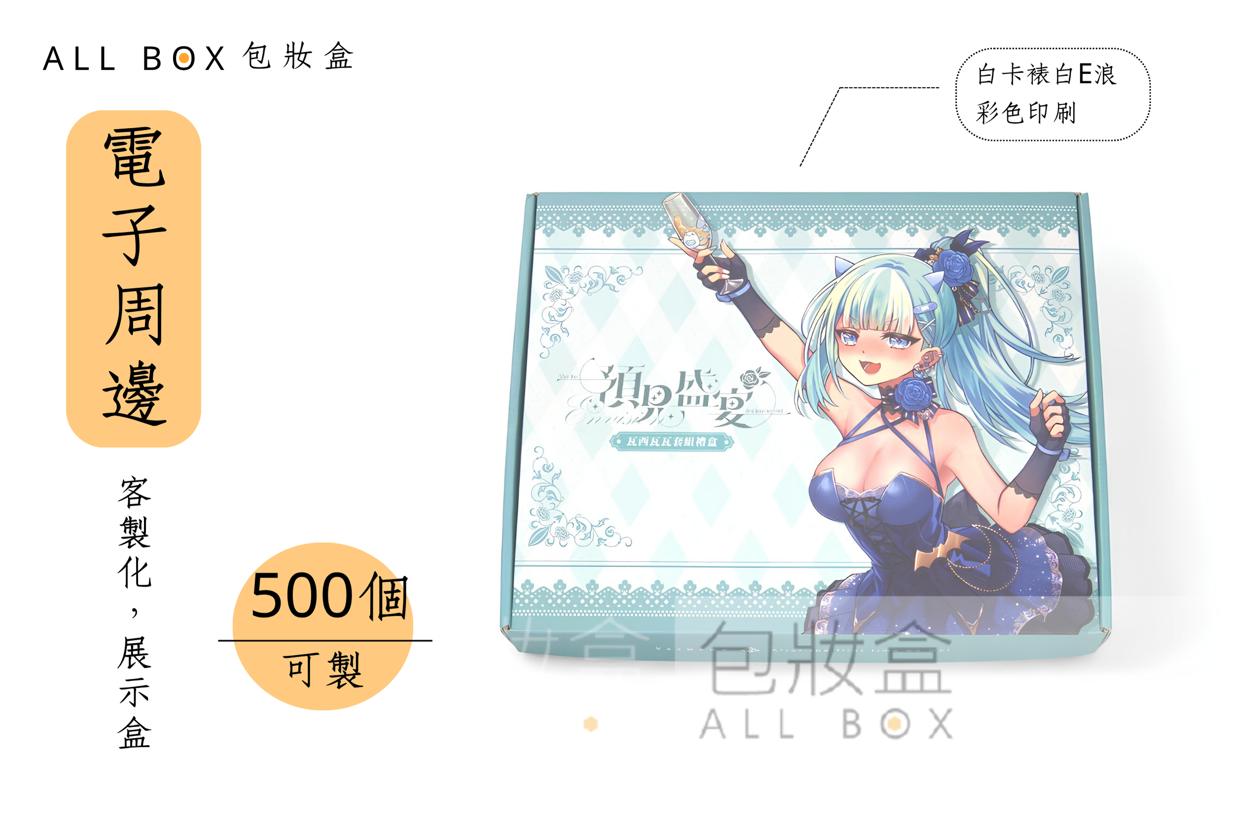 客製化訂製欣賞|白卡裱白E浪|彩色印刷|單面霧膜|造型盒子|展示盒|普通盒|虛擬藝人|電子周邊||台灣Vtuber|設計感|產品包裝盒|小量500訂製包裝盒