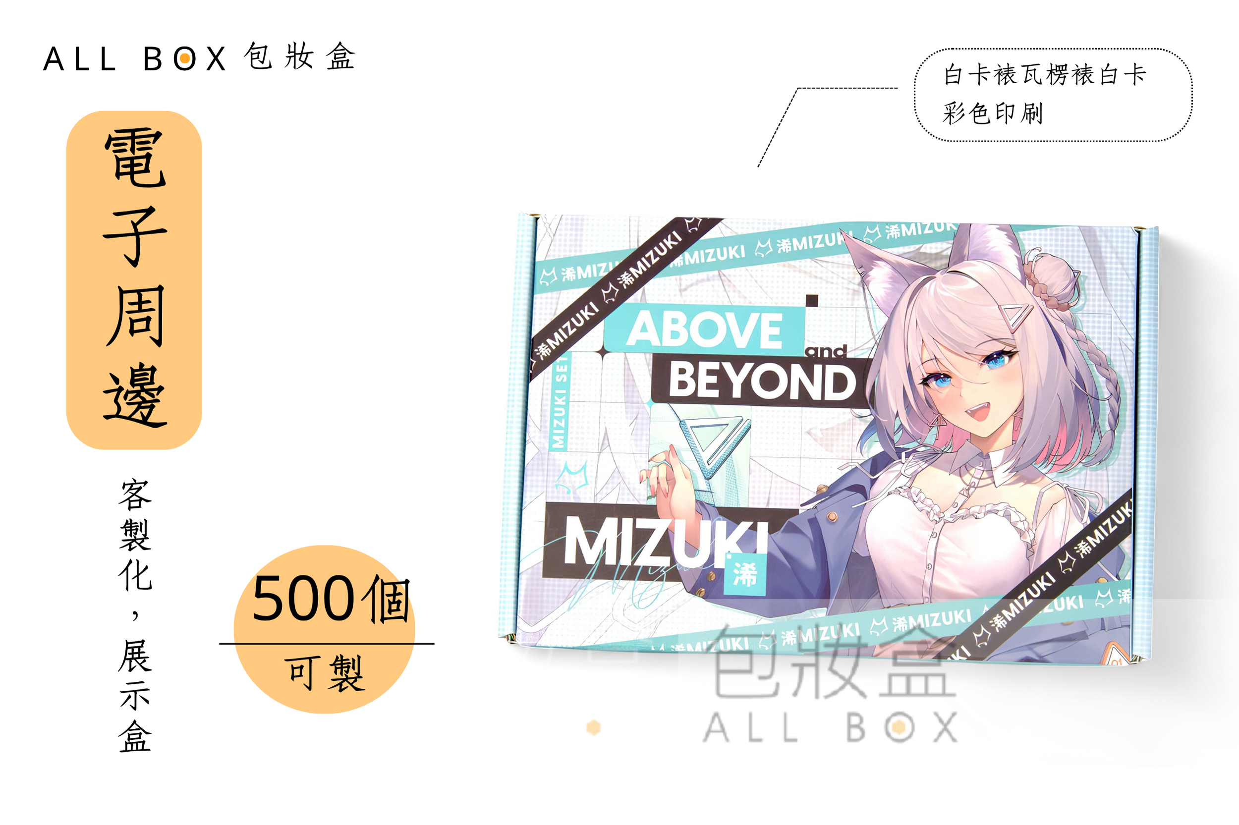 客製化訂製欣賞|白卡裱瓦楞裱白卡|彩色印刷|單面霧膜|造型盒子|展示盒|普通盒|虛擬藝人|電子周邊||台灣Vtuber|設計感|產品包裝盒|小量500訂製包裝盒