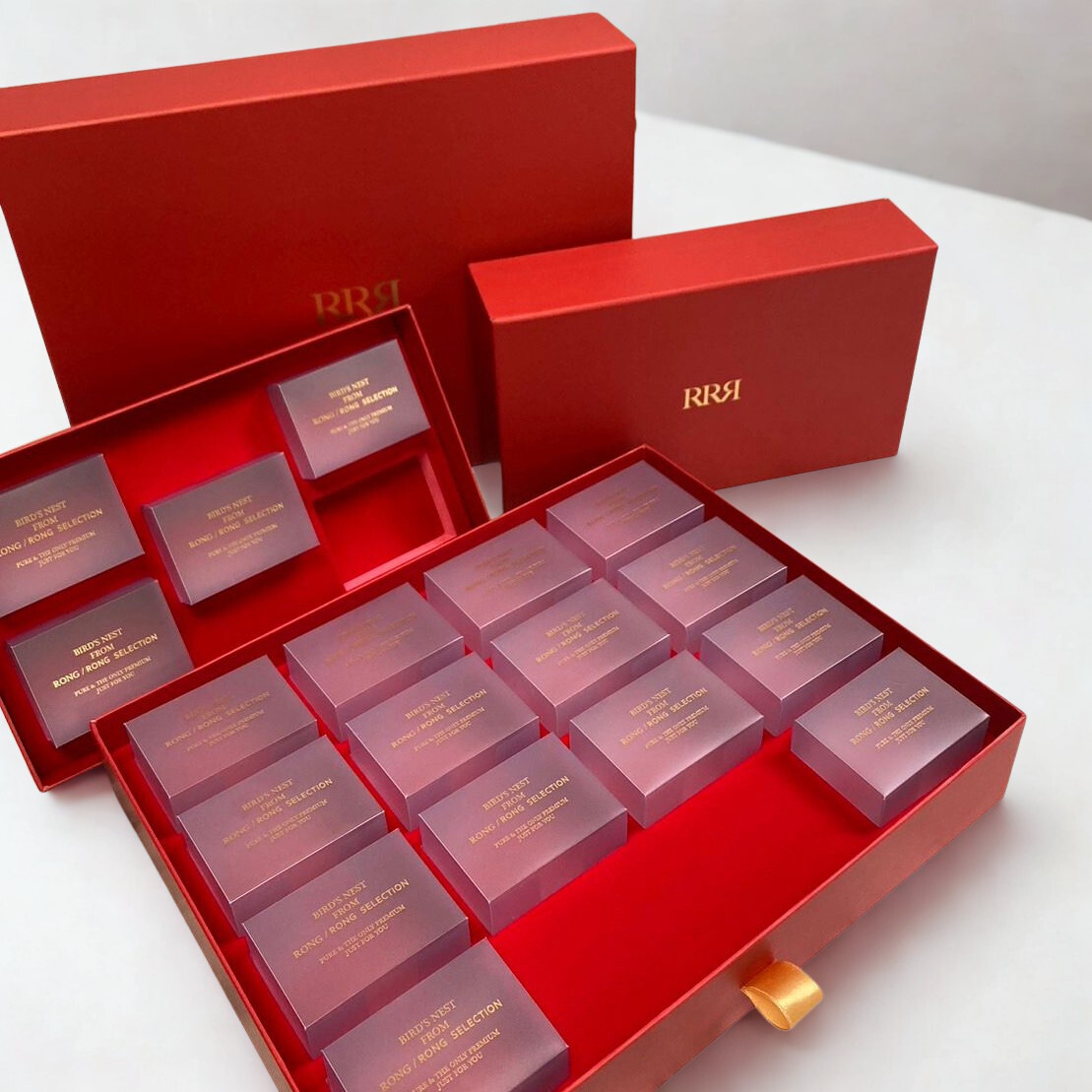 內盒外套的結構帶來層次驚喜,最適合高單價的茶葉、咖啡、燕窩等養生食品。內部精緻隔層可陳列多款產品,每一格都是驚喜。