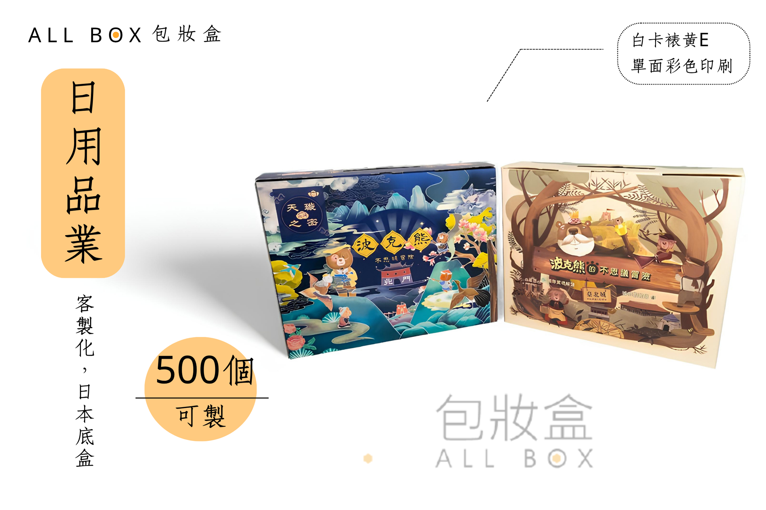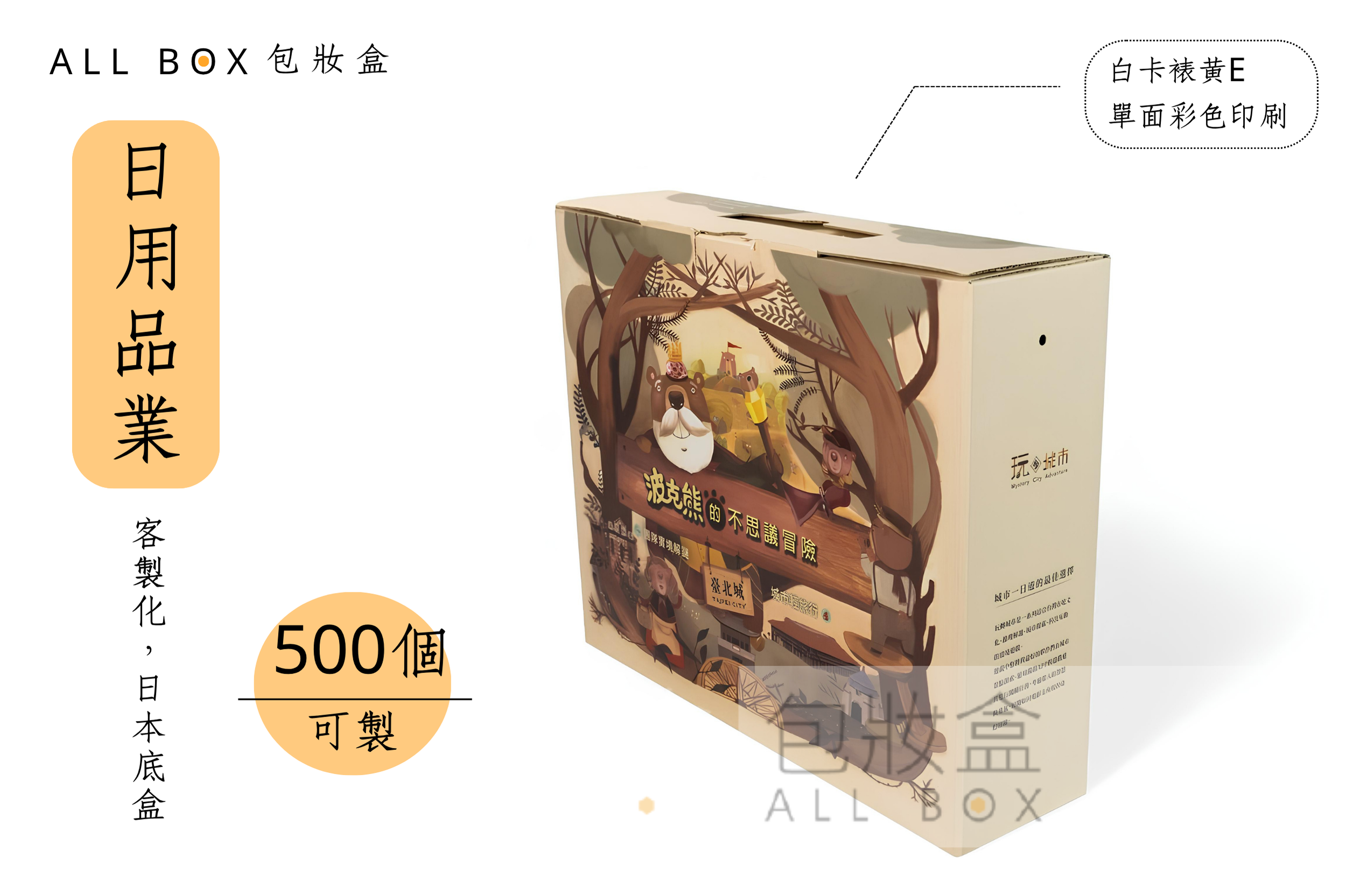 .顏色:白卡裱黃E浪+單面彩色印刷 .特點:數量500即可客製化/多種尺寸量身訂做/隨拿隨用/白卡彩色印刷 .用途:觀光文創/禮品/送禮/桌遊包裝/便利攜帶/一般包裝材/紙盒/普通盒/彩盒