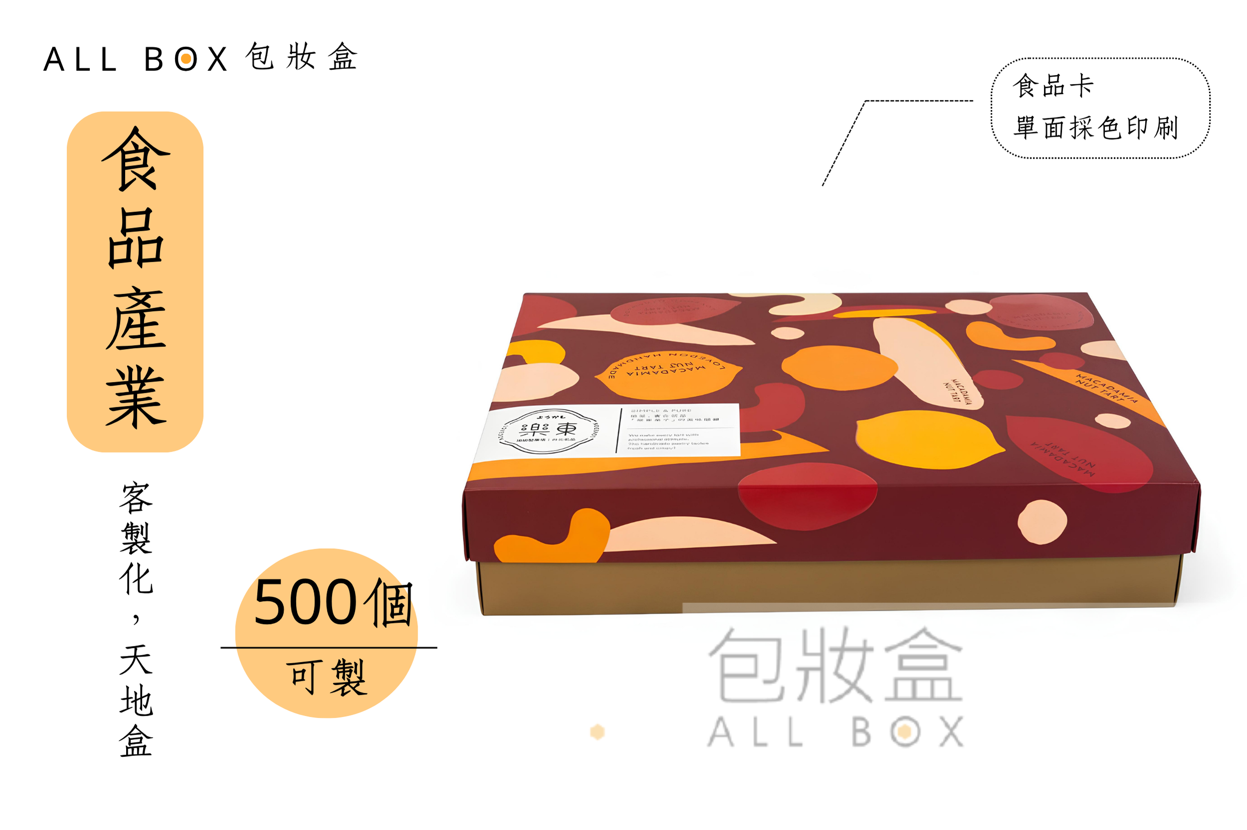 .顏色:食品卡彩色印刷+單面霧膜