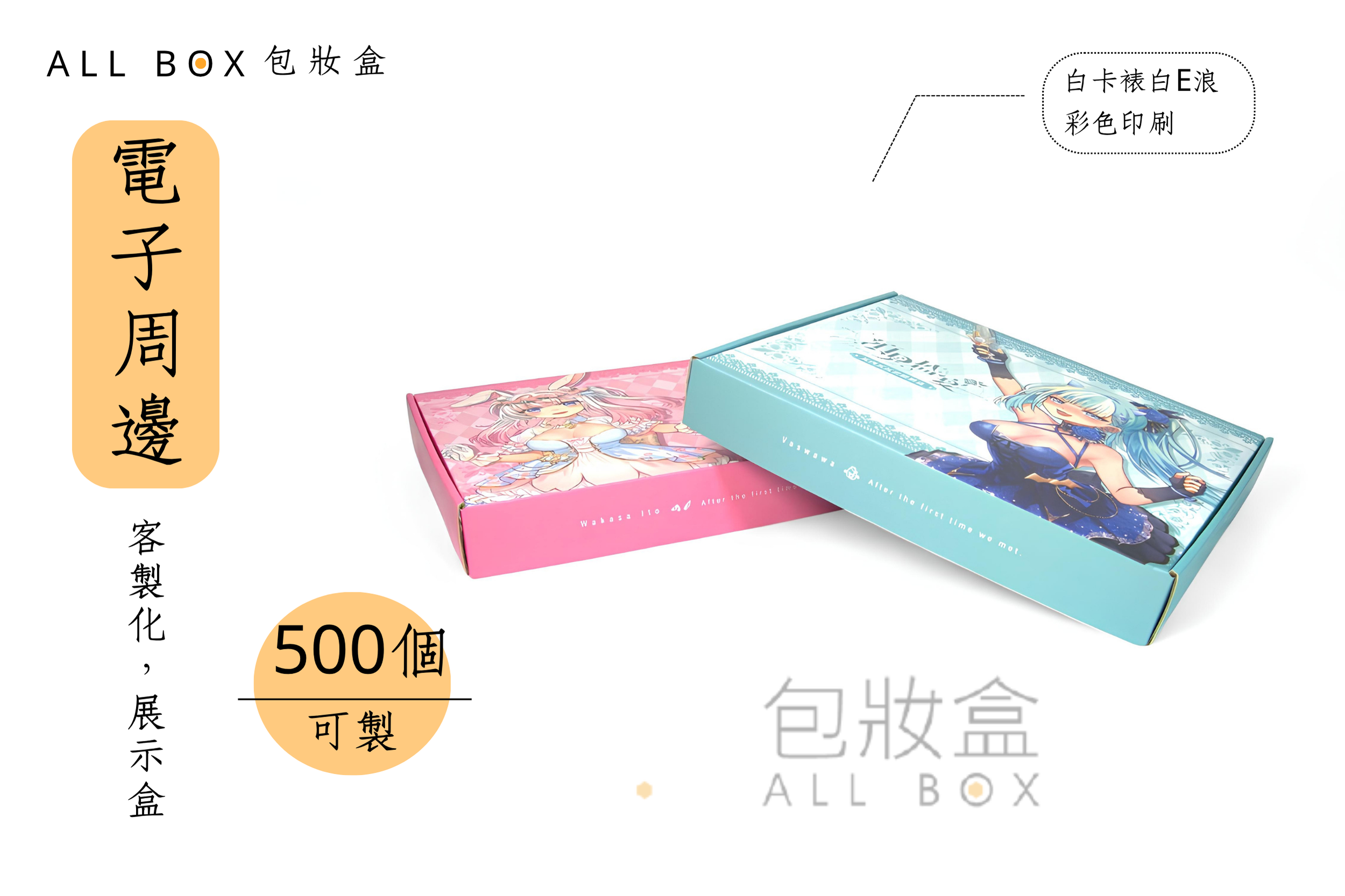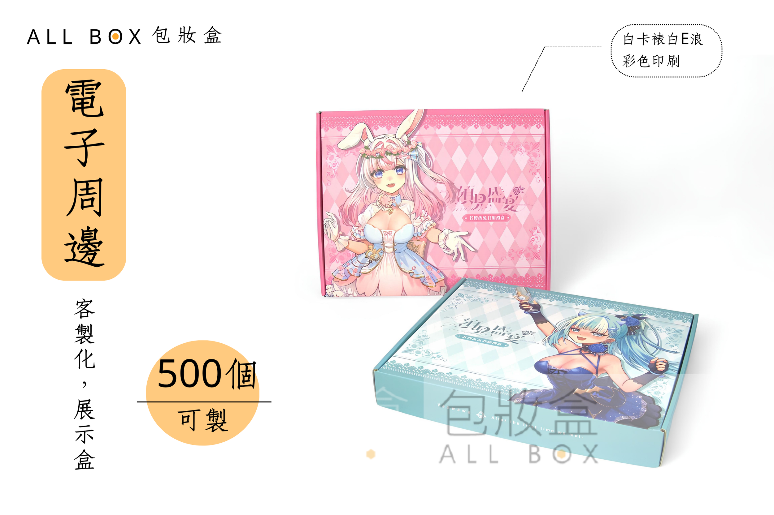 客製化訂製欣賞|白卡裱白E浪|彩色印刷|單面霧膜|造型盒子|展示盒|普通盒|虛擬藝人|電子周邊||台灣Vtuber|設計感|產品包裝盒|小量500訂製包裝盒