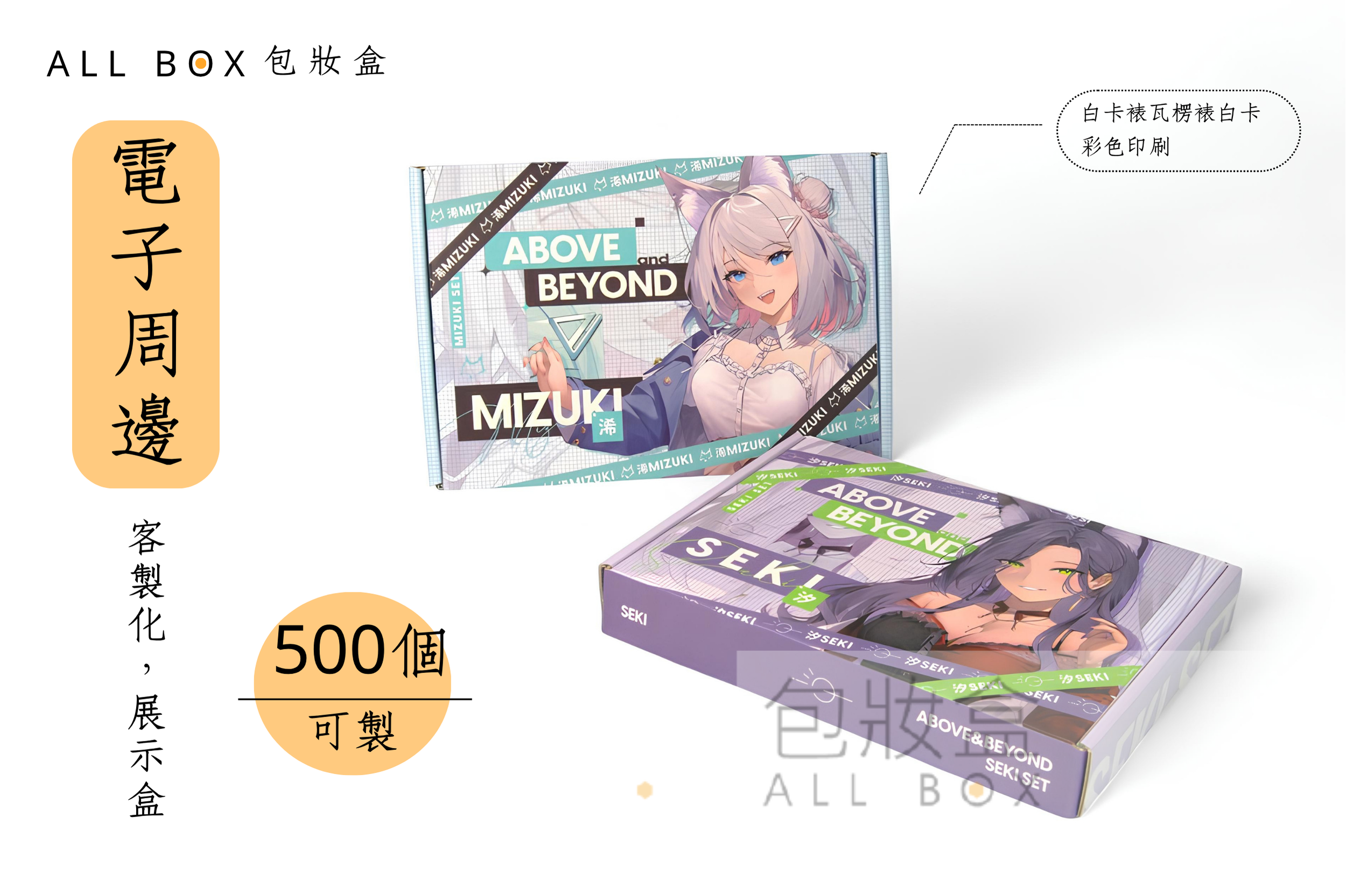 客製化訂製欣賞|白卡裱瓦楞裱白卡|彩色印刷|單面霧膜|造型盒子|展示盒|普通盒|虛擬藝人|電子周邊||台灣Vtuber|設計感|產品包裝盒|小量500訂製包裝盒